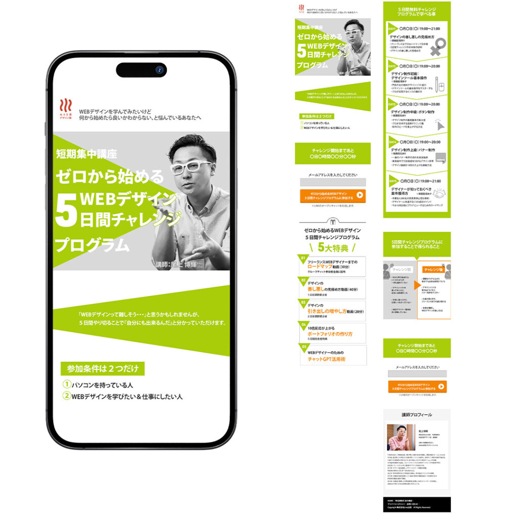 メインカラーの緑の中に映えるオレンジを使用し、緩急をつけています。